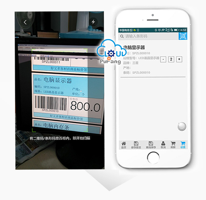成功识别货品信息,右图为扫描成功显示结果,并直接记