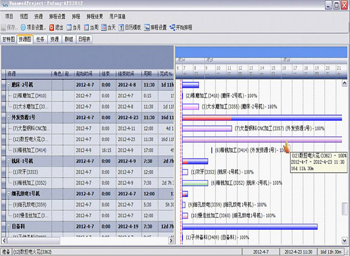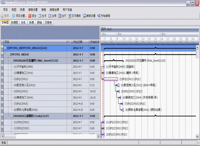 普方高级计划排程系统是面向计划、生管、生产人员设计,根据APS结合项目计划排程管理特点,提供加工任务、资源日历、排程策略、工序排程、工序计划、资源计划、任务资源交互甘特图等系统业务处理功能。采用计算机辅助计划(CAP)手段,实现项目计划、设计计划、生产准备计划、加工任务计划、物料需求计划、车间机台工序计划的分层集成计划管理。采用项目CPM(关键路径)\CCPM(关键链)\PERT(网络计划技术)等管理办法结合拉动式(PULL)、准时化生产(JIT)、TOC(约束理论)、OPT(最优生产技术)等进行多项目资源均衡负荷。实时准确预测、均衡安排未来产能;优化生产现场的生产顺序。在交期、设备产能、物料、工序顺序等多重约束下综合考虑数以万计的零件工序流转全自动智能快速排程生成全局优化、精准详细、精益可行的生产计划。