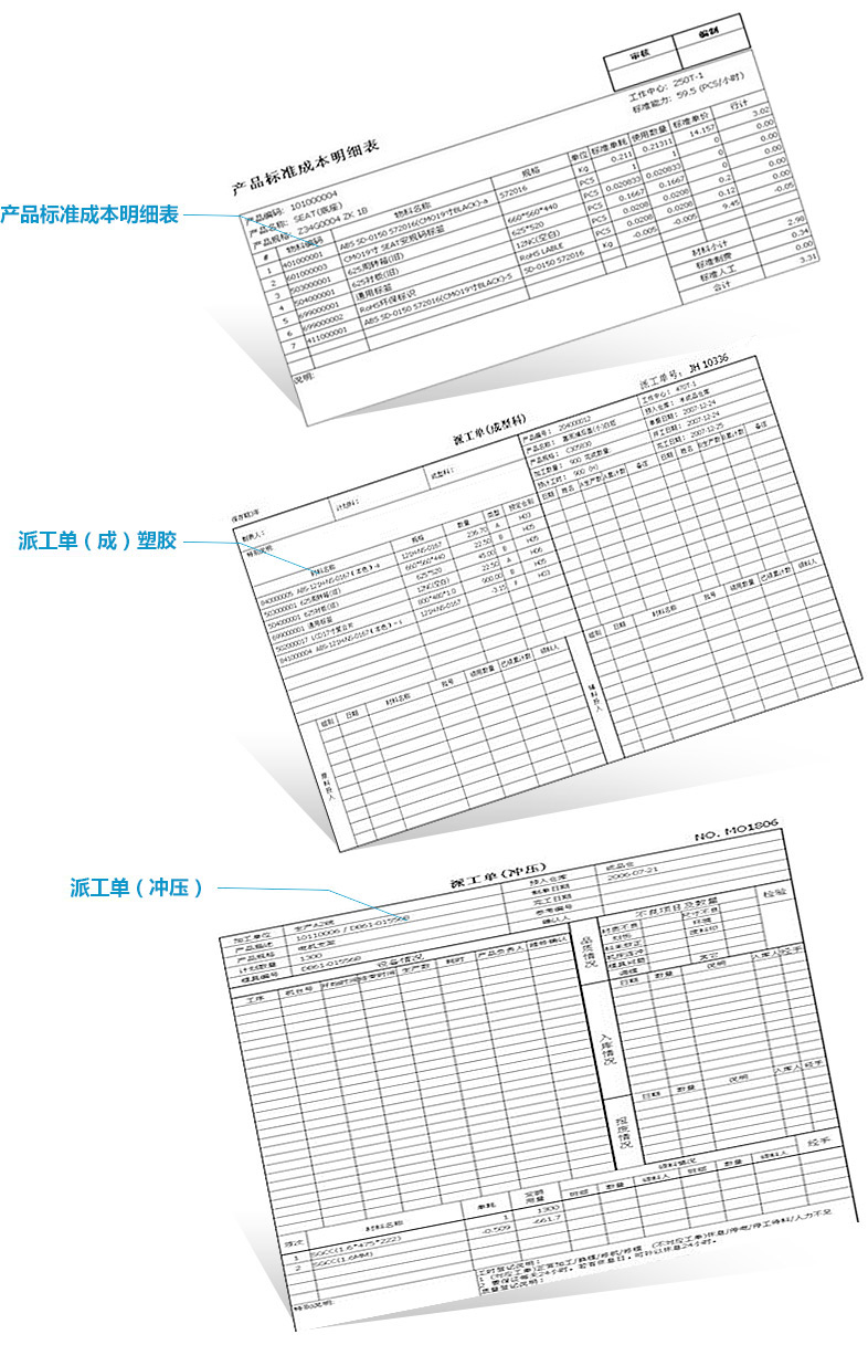 1. 适合于塑胶、冲压的工艺卡片;生产订单及生产作业指导书。