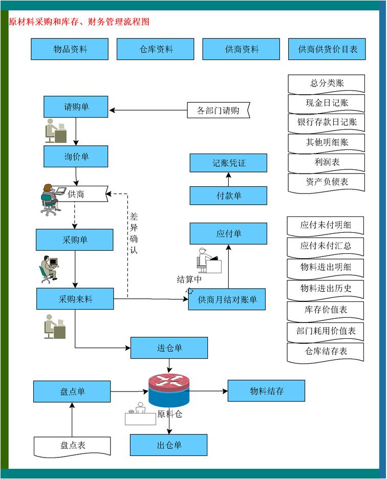 电镀ERP管理系统采购模块是一个处理一系列有关物料,资金,供应相关的数据处理运作的循环。包括决定采购的数量与时间,选择供货商,请购与询价,记录收料与质量检查,维护仓库已有库存和应付帐。